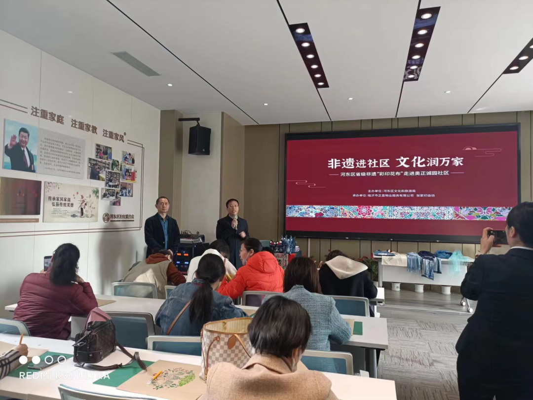 为传承和发展中华优秀传统文化,3月3日,河东区文化和旅游局携省级非物质文化遗产项目——“彩印花布”走进奥正诚园社区,开展非遗文化传承培训活动。