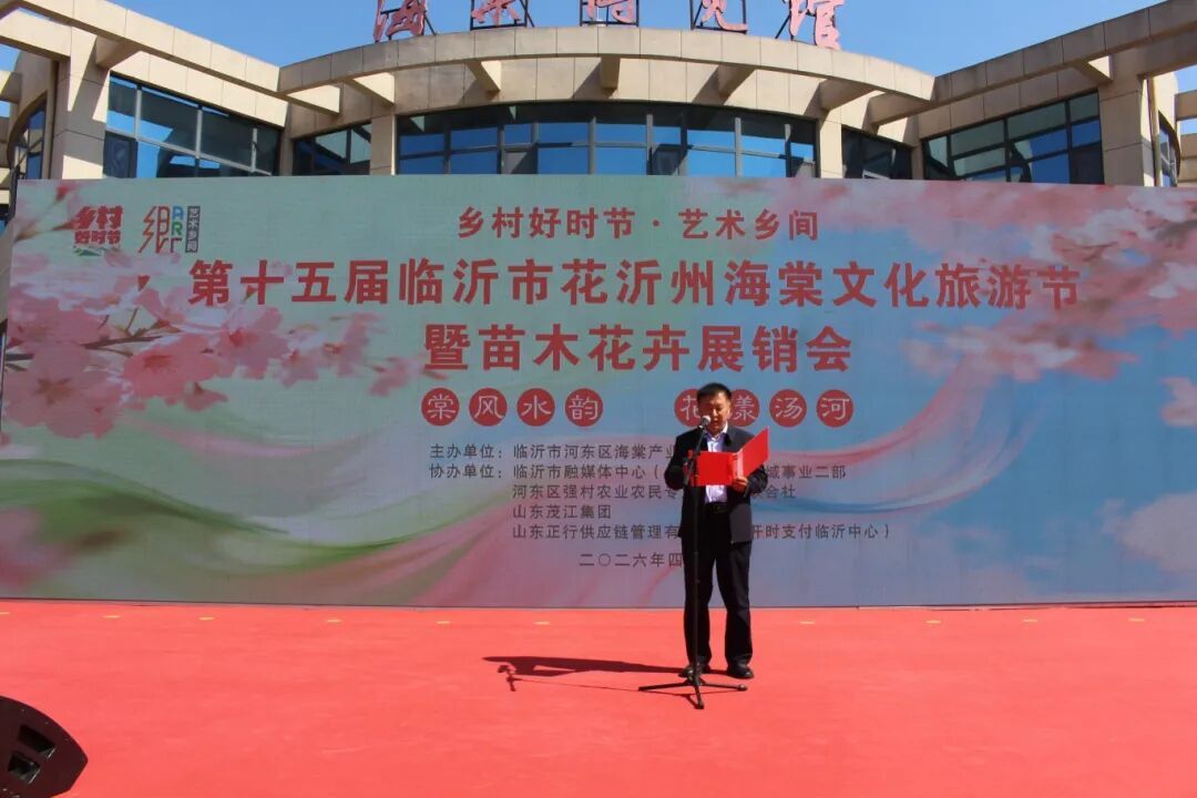 以花为媒,赴一场春日之约。4月4日上午,第十五届临沂市花沂州海棠文化旅游节暨苗木花卉展销会在河东区汤河镇前张庄中华海棠园盛大开幕。本次活动由临沂市河东区海棠产业推广协会主办,临沂市融媒体中心(传媒集团)县域事业二部、河东区强村农业农民专业合作社联合社、山东茂江集团、山东正行供应链管理有限公司(开时支付临沂中心)共同协办。