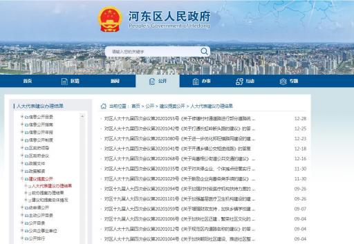 按时发布人大代表建议和政协提案办理情况和结果,进一步提升公众查询的便利性。2020年,河东区政府办公室未承办人大代表建议和政协提案。