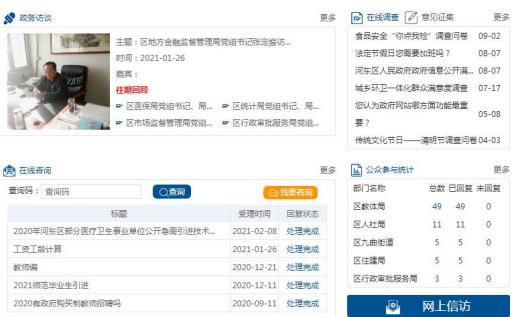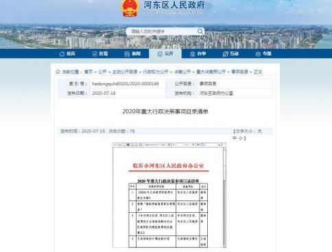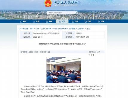 推进公开平台“智慧化”建设。完善门户网站“主阵地”,2020年,河东区对区政府门户网站进行了全面改版升级,着重开发文件公开平台、政民互动交流、公众答疑舆论引导等3大功能板块,新设立涉企财税政策直通车、行政执法公示平台、基层政务公开标准化规范化等专题专栏,增加了无障碍阅读、智能云搜索等新功能,以“视”、“听”、“评”等多种形式,提升网站内容的可读性,丰富了公开效果,提升了群众的参与度。改版后的门户网站职能不缺、内容不减、服务不少、功能不断,真正实现“互联网+公开+服务”一站式服务新模式。规范政务新媒体建设,对全区政务新媒体进行全面摸底管理并纳入大数据系统,定期检查全区政务新媒体运行情况,对无法继续保障的新媒体进行定期清理。