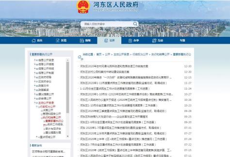 基层政务公经开标准化规范化公开。根据2020年河东区政务公开工作要点,新增基层政务公经开标准化规范化推进情况;2020年,共编制完成本级26个试点领域政务公开事项标准目录,并主动在河东区政府网站公开发布。