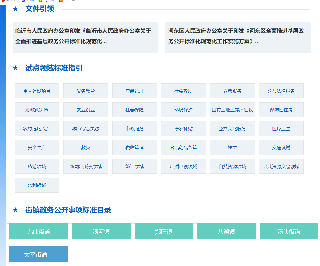 一是继续推进基层政务公开标准化规范化。对照国务院、省级有关部门新出台的基层政务公开标准指引,持续深化基层各领域公开工作,逐项梳理政务公开事项目录范围,组织完成新闻出版版权、交通运输、旅游、广播电视、统计、水利等7个新增领域基层政务公开事项标准目录编制及公开工作,及时调整区政府信息公开平台“全面推进基层政务公开标准化规范化”专题栏目,将7个新开设的领域栏目根据实际情况集中发布展示。